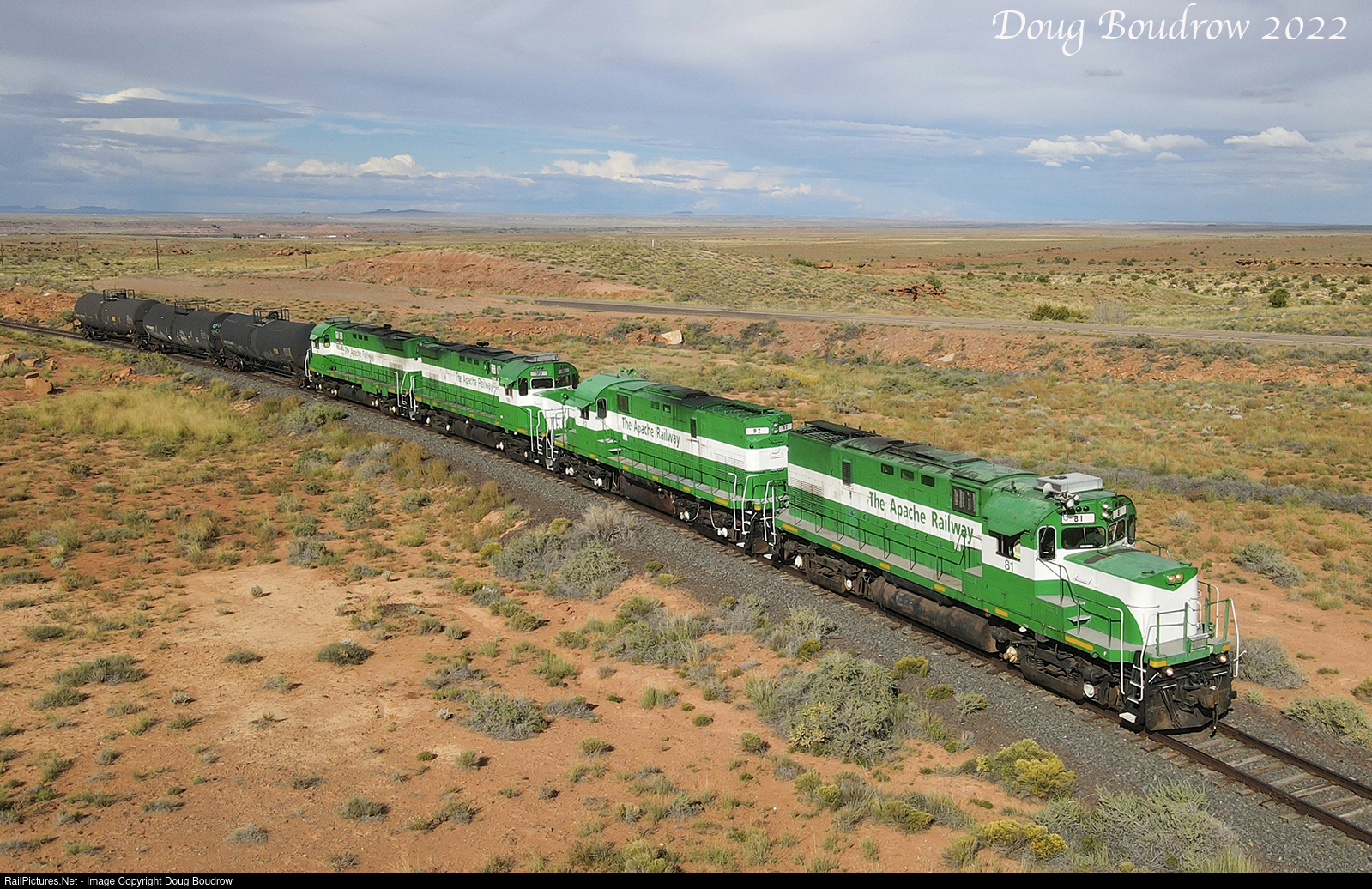 81 is doing the honors on the Southbound run at MP5 with a short train of tank cars bound for the railroad's car repair facility. This locomotive was built by the American Locomotive Company in June 1964 as the Louisville & Nashville 1305. Apache is an all-Alco operation.