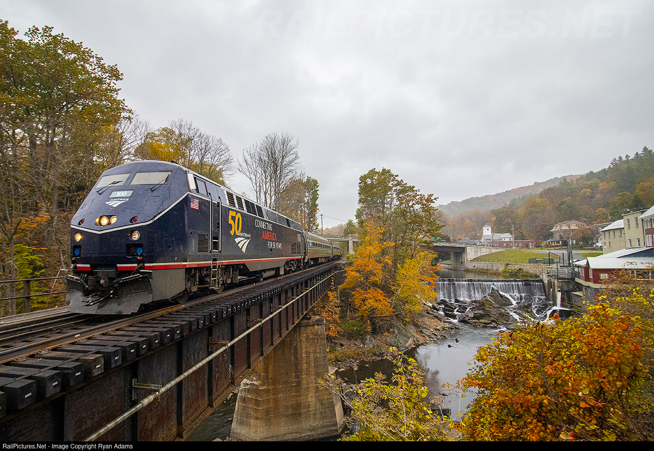 With the fall foliage starting to dwindle due to recent rain shows and wind, passengers on the Vermonter still have one thing to look forward to. Amtrak has had one of their newer anniversary engines assigned to today's southbound Vermonter. The "Midnight Blue" scheme is a nice treat with the addition of 145 that's been floating around on the Vermonter too.