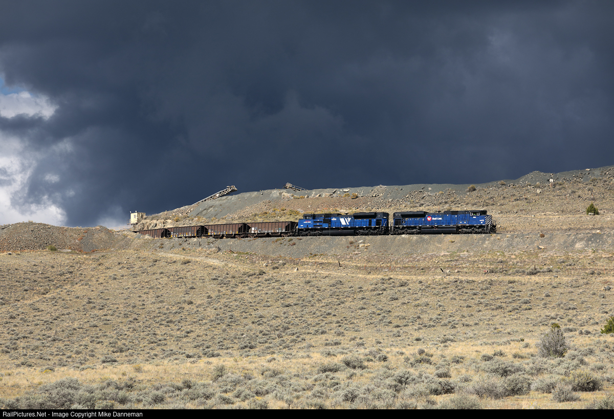 Under a threatening sky, a Montana Rail Link ballast train approaches the loader at Spire Rock, Montana, on October 3, 2022. A pair of MRL’s EMD SD70ACes power the train that is running on a portion of the old Northern Pacific main line over Homestake Pass.