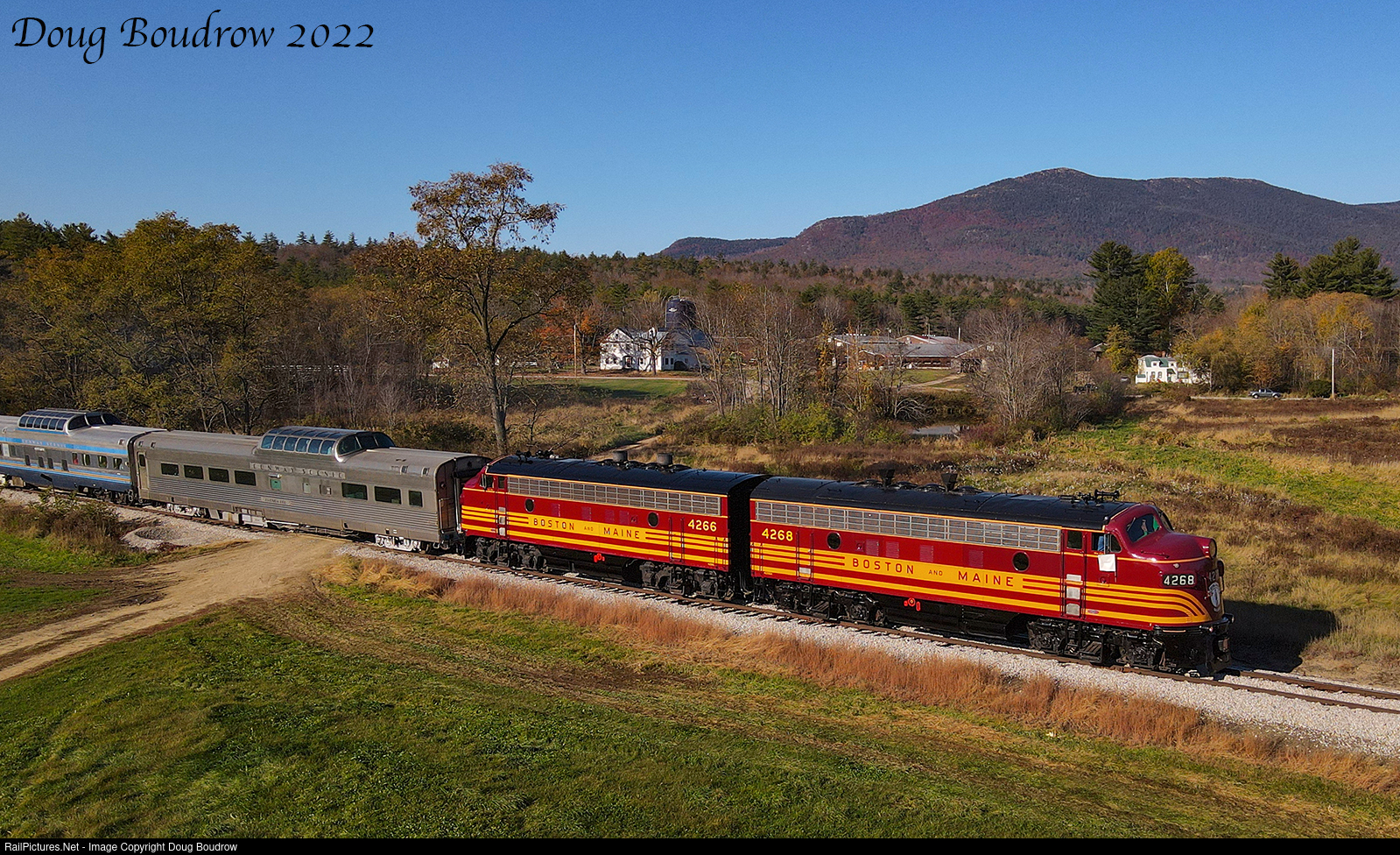 Conway Scenic used 470 club's matched set of Boston & Maine F7s on the club's annual charter through Crawford Notch. The 1949 F7As looked fantastic as they lead the train, both units have recently been painted by 470 club volunteers. The train went to Conway before going up the Notch and is seen at Hussey's Farm for a photo run-by.
