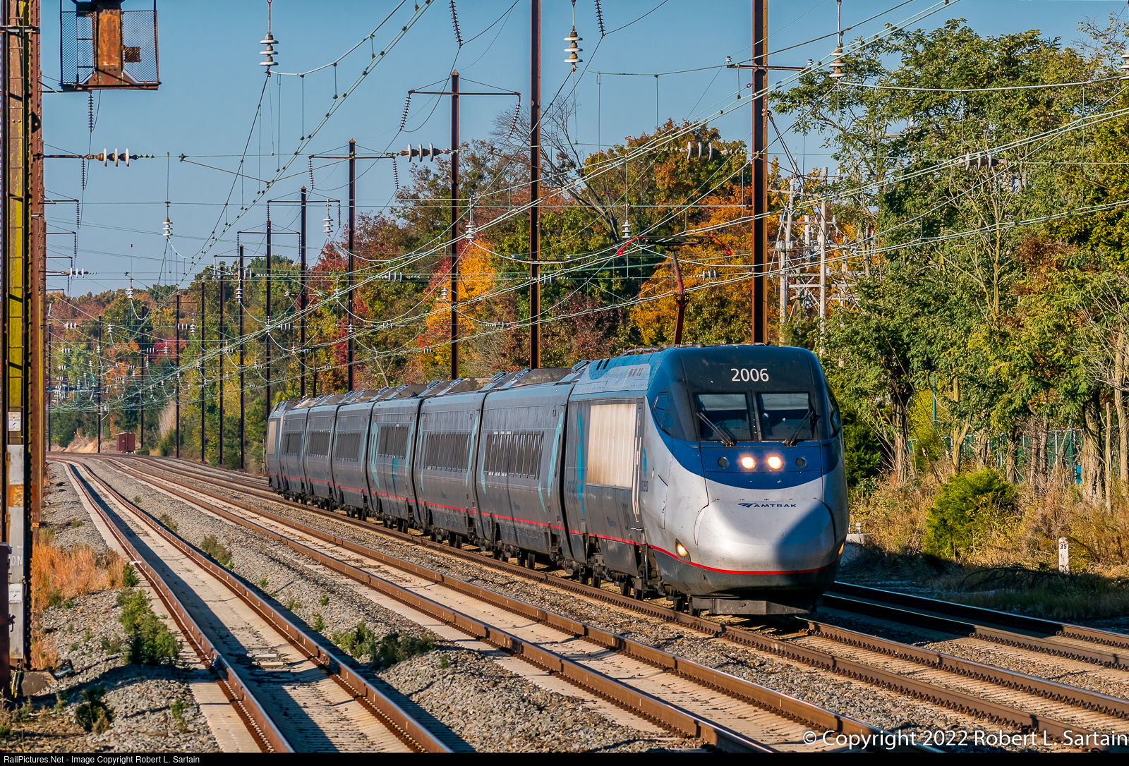 Amtrak's original Acela service may be living on short time, as the trainsets are over twenty years old, but Trainset 12, with power car 2006 leading, is running on the advertised as Acela 2248 this autumn morning.