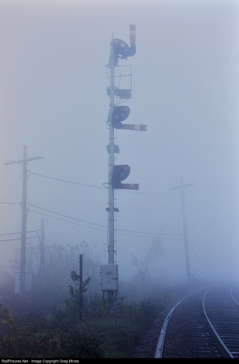 Halloween is only a few days away so what could be better than a ghost-like image of one of CNW's unique semaphores controlling the junction at St. Francis WI. in October of 1984? The approaching train is lined up for CNW's New Line, built to alleviate congestion on the passenger heavy (pre-Amtrak) Old Line that runs close to Lake Michigan. The semaphores here are on borrowed time and would be replaced by more modern signals in 1987.