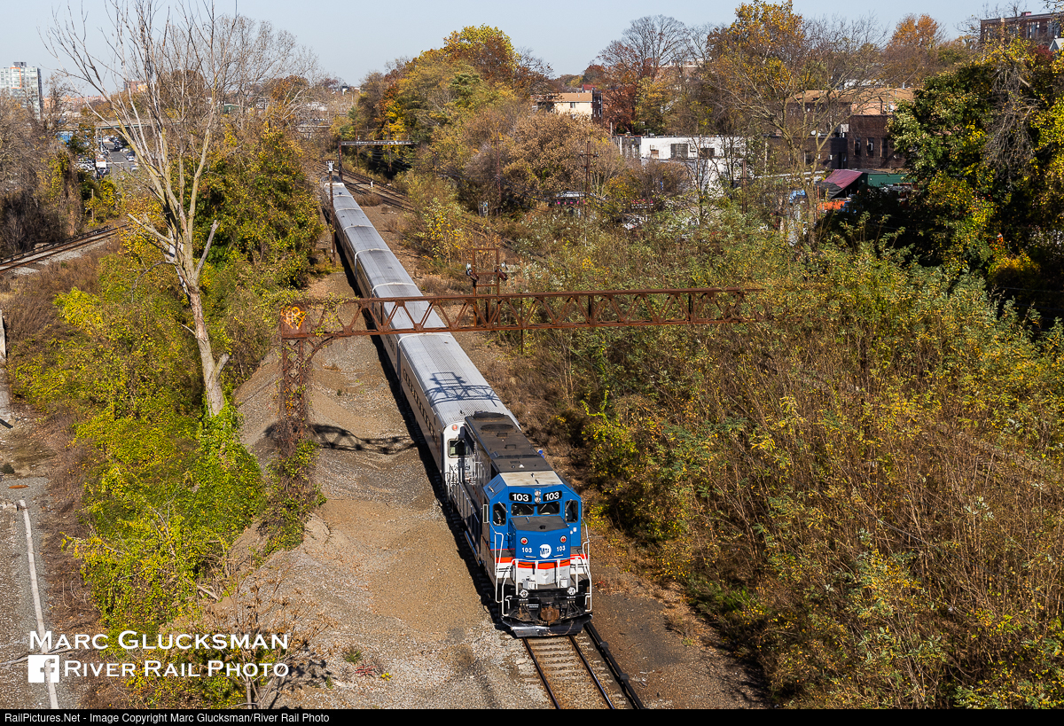 Diesel In Third Rail Territory. After passing through CP 212 on track 1, MTA Metro-North Railroad GP35R 103 (ex-Conrail, exx-PC 2251, née-PRR 2310, 11/1964) leads the disabled set under the former catenary support near Nereid Avenue in the Woodlawn neighborhood of the Bronx, New York on Thursday, November 10, 2022. The set is being transported from Stamford, Connecticut to the Croton Harmon Shops for repair. In the New Haven Railroad era, trains at this location operated on overhead wire power, this has since been changed to third rail territory and the change occurs west of the Pelham Station.
