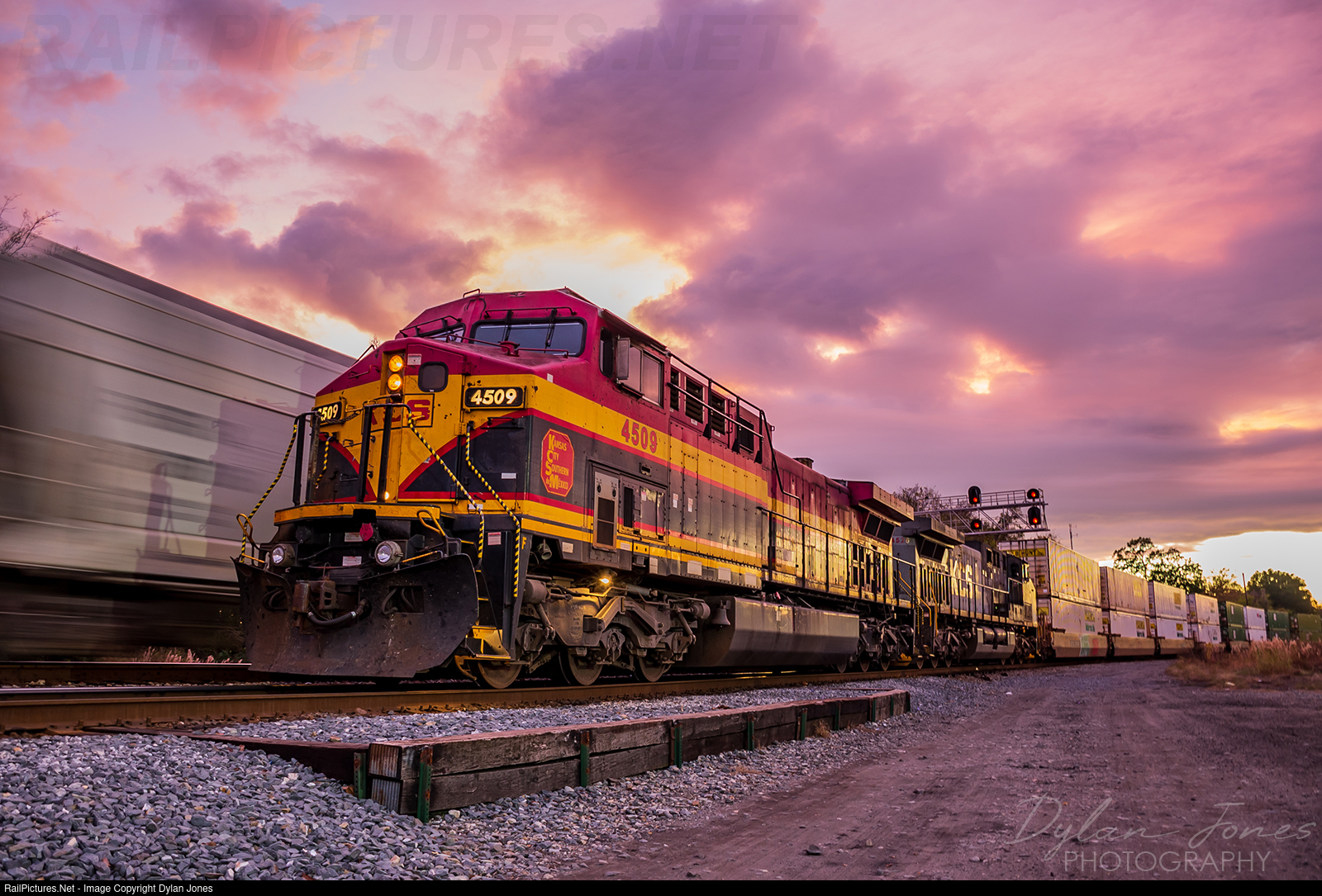 A pair of KCSM AC4400's idle away at the 27th avenue crossovers in Meridian, MS as a New Orleans bound NS manifest rolls by on the NS main. Soon after this shot was taken, an NS crew showed up to take this Atlanta bound stack train eastward through the night.