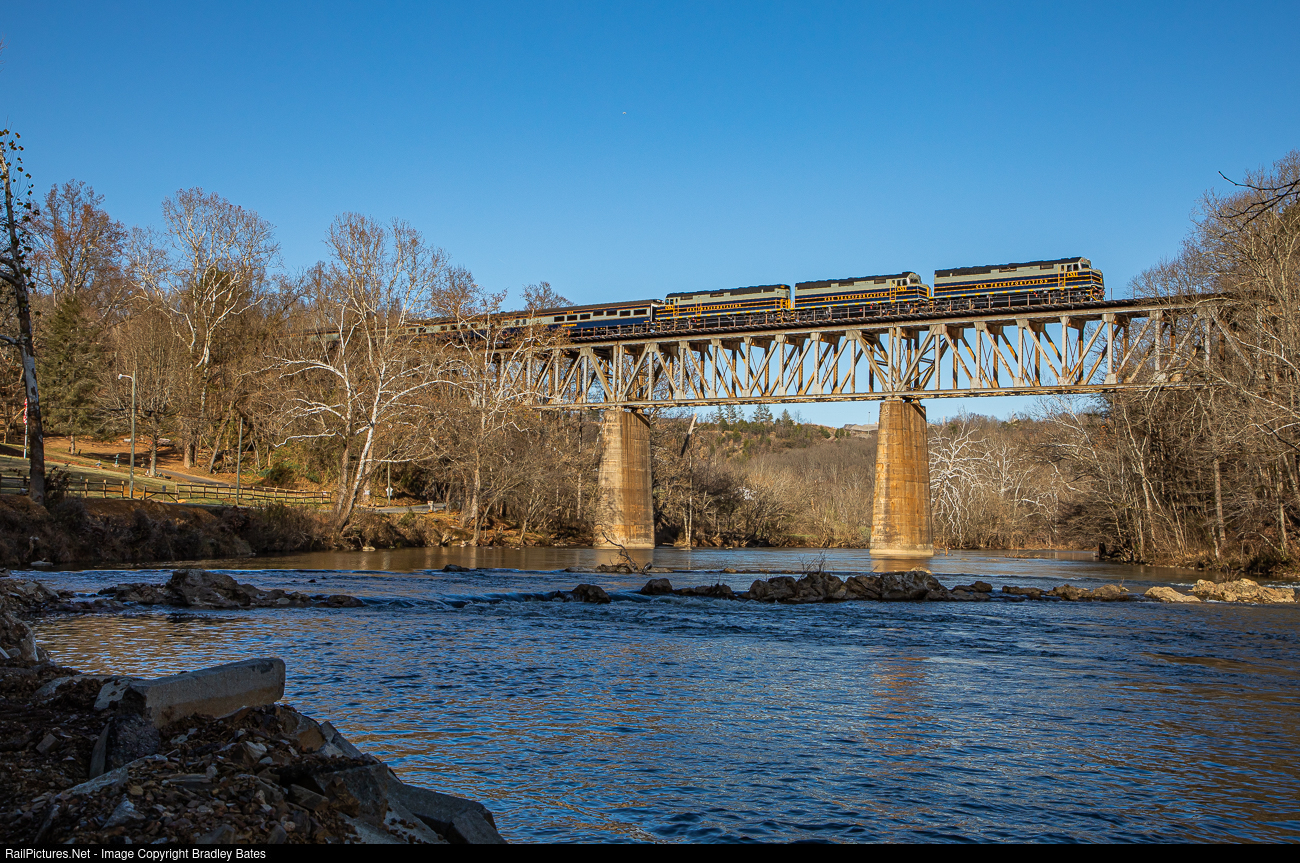 The 80th anniversary of the CSX Santa Train glides across the Holston River Trestle running as P001-19 southbound into Kingsport, TN.