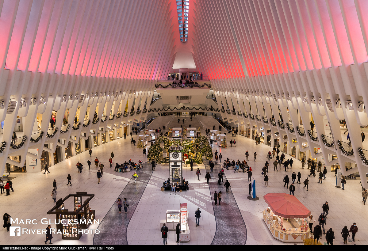 Holidays In The Oculus. The $4 billion Oculus station house near the Freedom Tower, designed by Spanish architect Santiago Calatrava, was opened on March 3, 2016. It serves as the World Trade Center Transportation Hub, connecting the Battery Park Ferry Terminal, PATH (Port Authority Trans-Hudson) and the Metropolitan Transportation Authority - MTA New York City Subway lines. On the evening of Thursday, December 1, 2022, seasonal holiday decorations are in full effect for the commuters at the 5th busiest transportation hub in the New York metropolitan area as they walk through the Westfield World Trade Center Mall.
