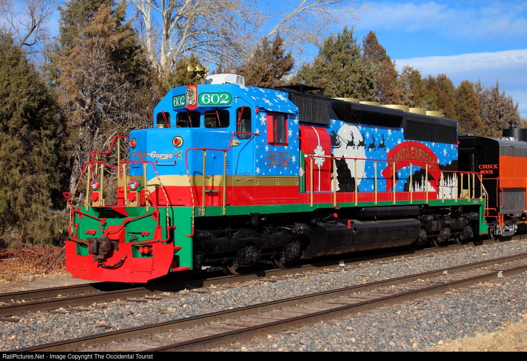 Trips to the North Pole took on a different look this season, with ex-ESWR #602 specially painted for the trips. This is paint, not a wrap. All three ex-ESWR units now have individual schemes. For #602, the same scene is illustrated on both sides, but the fireman's side comes with the bonus "box" painted over the traction motor blower housing.