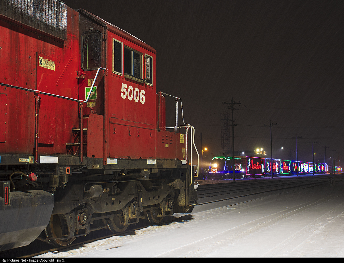| After a 2 year hiatus, CP's Holiday Train arrives in Thunder Bay to entertain a massive crowd as CP 5006 looks on between yard assignments. Took several years of attempting this shot before yard power was parked in the right spot, attempting to recreate Dave Young's beauty from the same location in 2008. |
