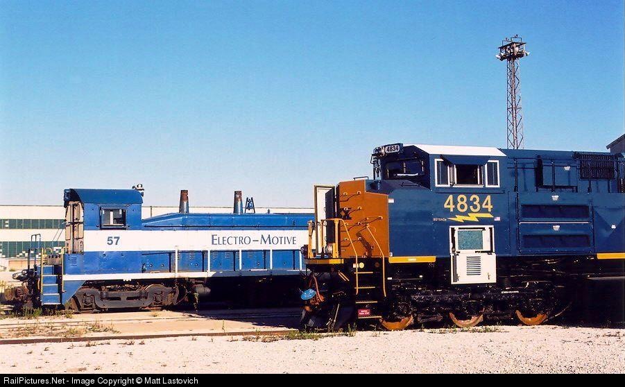 CSXT 4838 and EMD 57 sit side by side in LaGrange, IL.