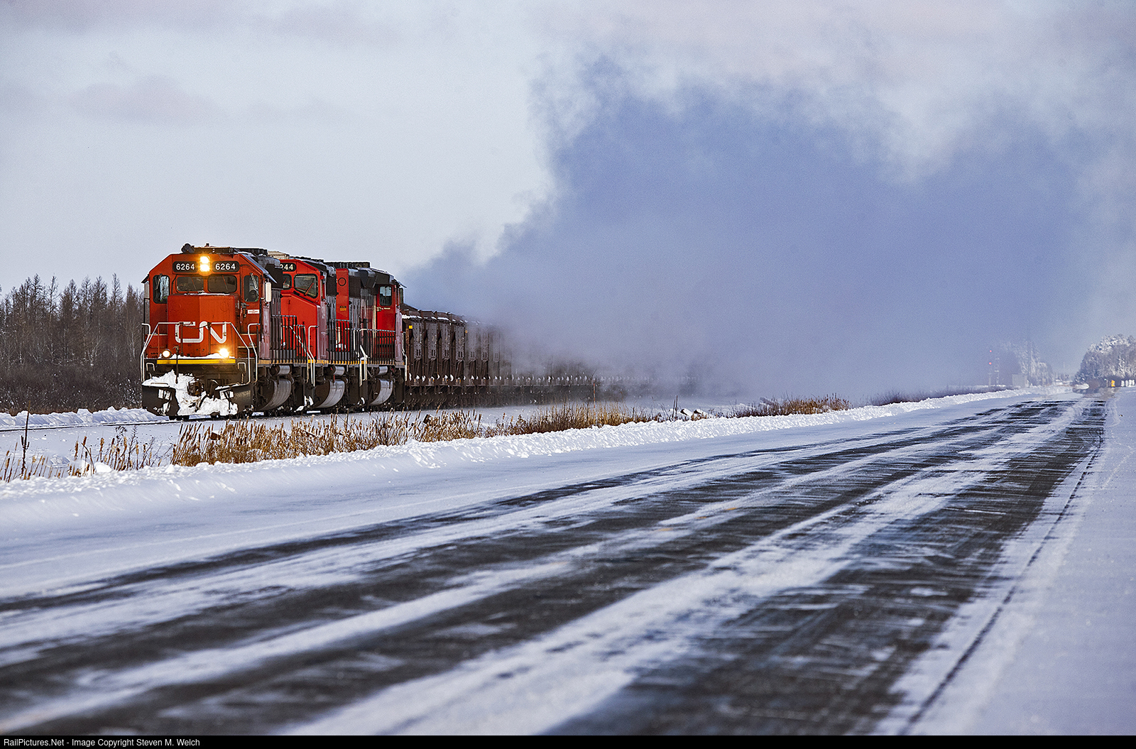 A literal steam train. A trio of SD40's lead 138 freshly baked taconite pellets from Cleveland-Cliffs Fairlane facility on a frigid December morning.