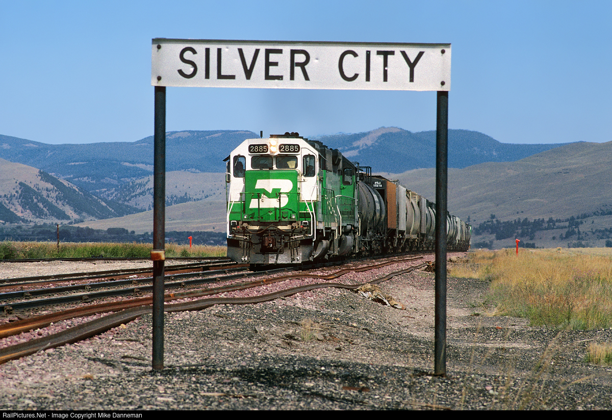 Burlington Northern’s freight operating between Great Falls and Helena is getting close to Silver City, Montana, on August 25, 1993. Unfortunately, BNSF stopped operating this former Great Northern line in July 2000, and it has remained closed to through traffic since.