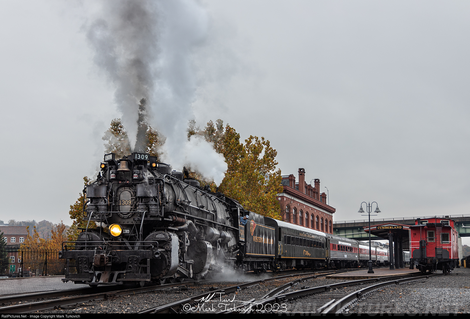 Western Maryland 1309 awaits its departure from Cumberland on a dreary October morning.