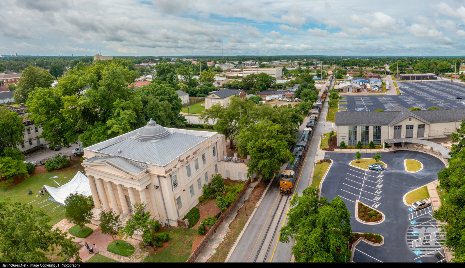 units for CSX L837 (Camak supply train formerly the A757). After a recrew and meeting the M693 in Augusta Yard they will be on their way north. To the left is the Old Medical College of Georgia.