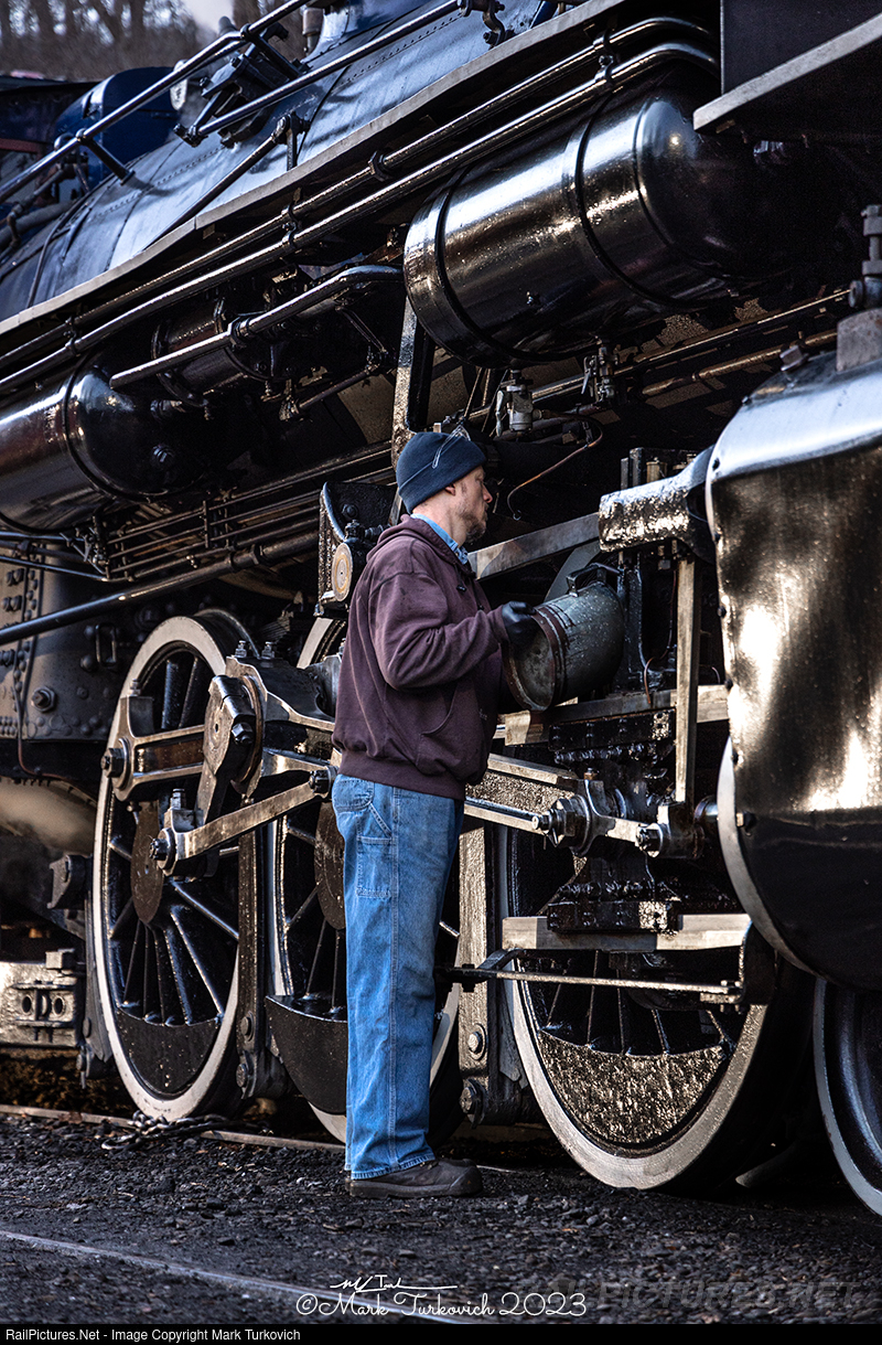 Engineer Ryan Bausher does his final oiling to Reading & Northern 425 before its last day of operation before its 1472.