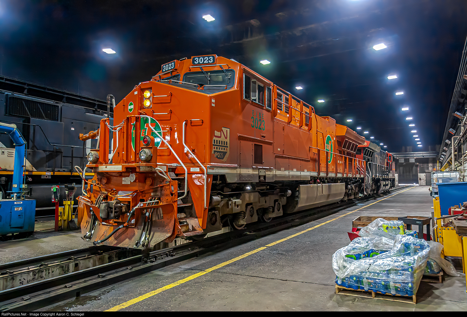 | The "J". The CN 3023 has just pulled into F building for service at Woodcrest before heading out on the next assignment. The unit had come in a trail on a Q train to CN Gateway just prior to heading for the Shop. I just want to thank Brian Caswell for some amazing cleanup work on this shot. |