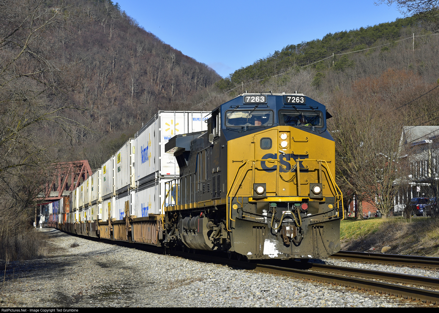 CSX priority intermodal I016 (Bedford Park, IL-Chambersburg, PA), approaching Valley Street on No. 2 Main at 08:46, is an early arrival into the Cumberland Terminal on 02/18/2023, 27 minutes ahead of the arrival of Amtrak’s eastbound Capitol Limited (CSX P030).