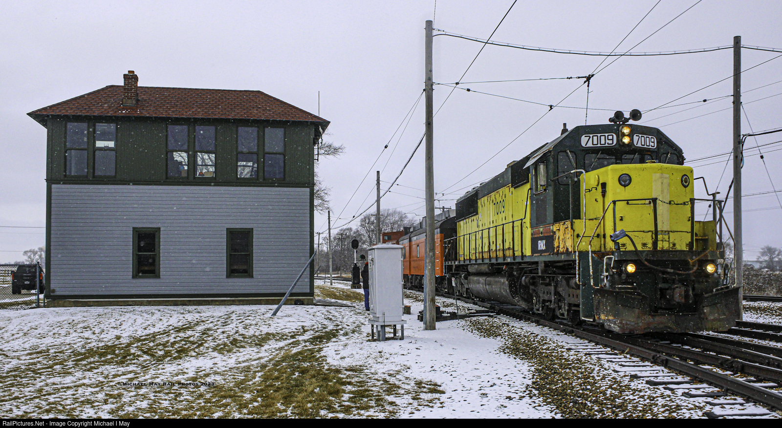 On its first run at IRM, CNW 7009 passes Spaulding Tower as it approaches Union Depot