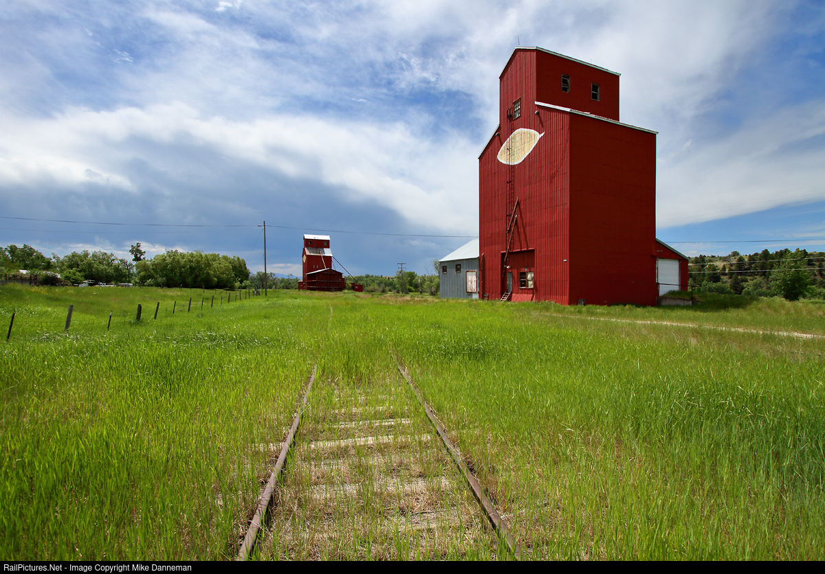 The Shields River Valley Railway built a 22-mile line, completed in 1909, north from a connection on the Northern Pacific at Mission, Montana, to serve the agricultural communities of Grannis, Chadborn, Clyde Park, and Wilsall. A year later it became a NP branch, eventually becoming the property of Burlington Northern Railroad in 1970. The line was abandoned by BN in 1985, but amazingly, in 2022, the rail is still in place at many locations. At Clyde Park on June 28, 2022, two red grain elevators appear to be in quite remarkable shape, even though it has been at nearly 40 years since a train plodded up the branch. The tracks are still in, barely visible through lush grass of a wet spring.