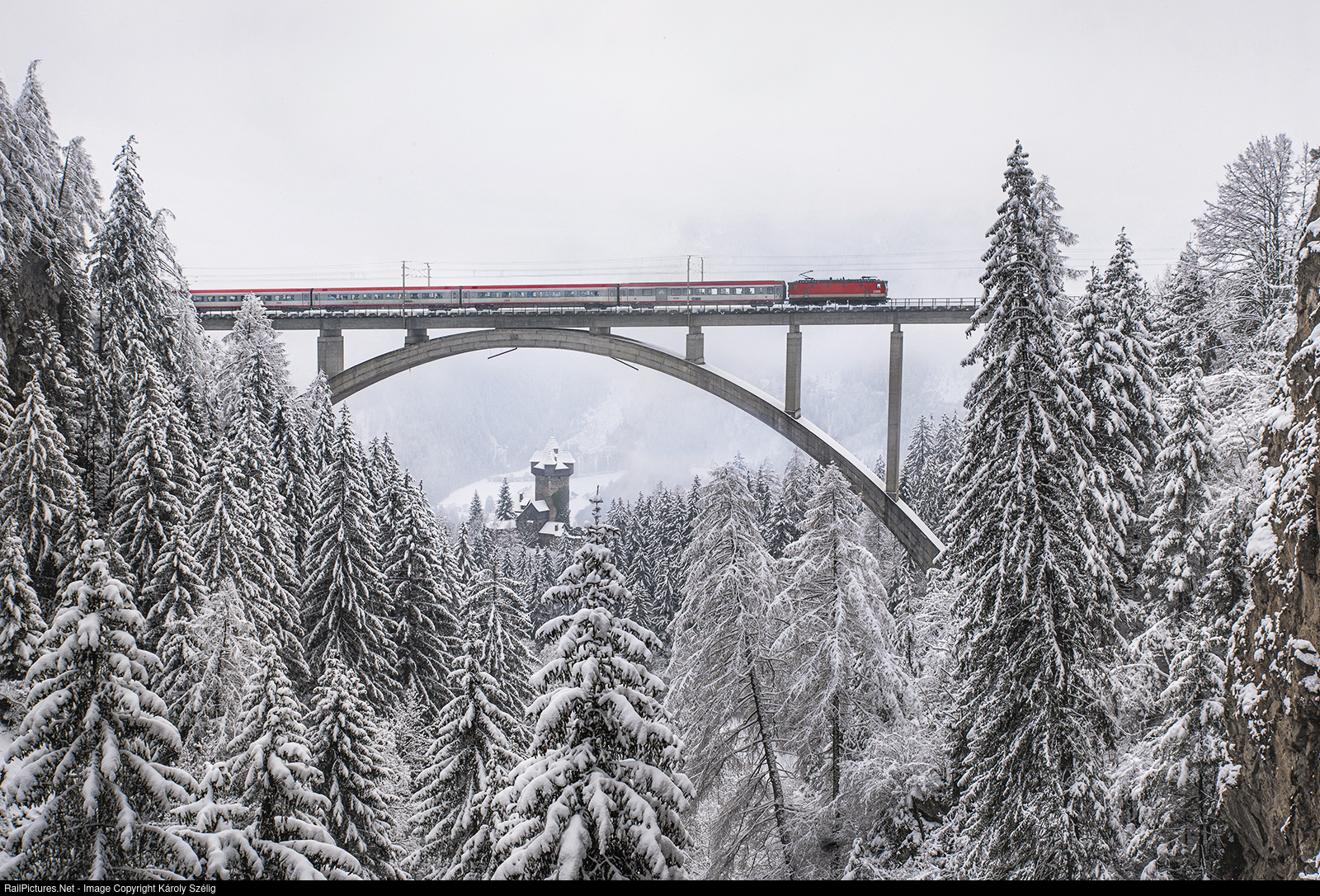 | Solid snow on the Tauern south ramp is just as rare as ÖBB providing a nice toned loco on their trains nowadays. We've just managed to catch it while mist was thin, although I'll ask next time for better luck on having something freshly repainted on the point. |