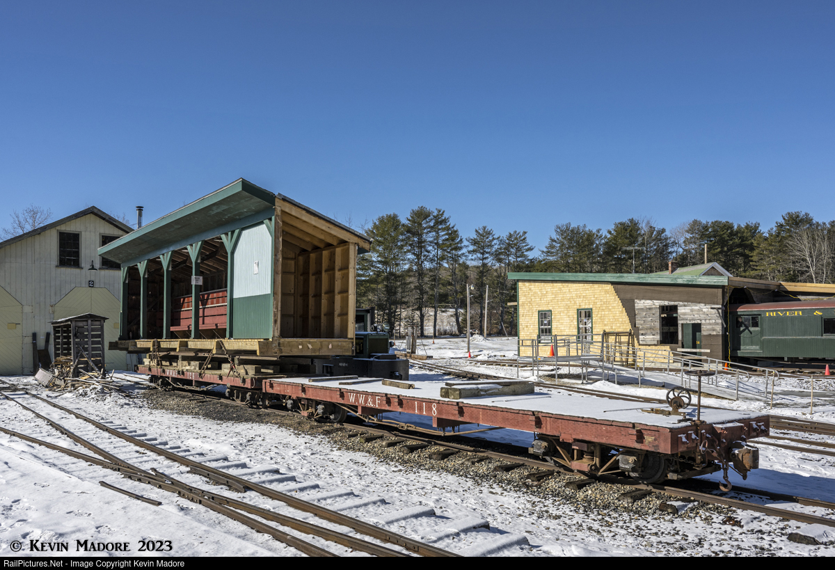 Handle with care: A "high profile" load on the WW&F - Part 1. The winter of 2023 brought some changes to the WW&F Museum's Sheepscot Yard. After decades of use, the museum's passenger platform was in need of a facelift. The existing platform and station complex had settled and shifted in the soft Maine soil and the whole complex needed to be rebuilt. The platform and shelter area also needed to be enlarged, to accommodate a significant increase in passenger traffic since it was originally built. With this station re-build, came an interesting opportunity. A portion of the existing structure, namely the passenger shelter, was still quite serviceable, albeit too small to be reused here. What to do?