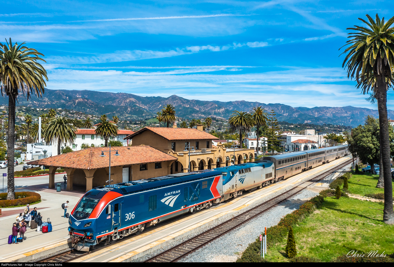 Arriving at the Restored Southern Pacific Station in Santa Barbara, Amtrak No. 14, the northbound Coast Starlight, with new Siemens ALC-42 No. 306 on the point.