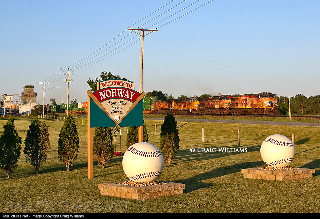 The mid-day hotshot out of Chicago has around 62-63 mph in hand as they work west into the setting sun. The crew on the train is 97 miles into their over 300 miles trip from the east side of Iowa to the westside of Iowa. The "Long Pool" crew and will run from Clinton to Missouri Valley on the ex-CNW double track main thru Iowa. Norway is located at MP 97 on the UP Clinton Sub. The town has a few nice displays to tell the story of how baseball came to this little town shortly after the Civil War. The town ended up winning 12 state titles and sending at least 16 players to professional baseball. In 1991 the legend of Norway baseball ended when the high school was closed and merged into a bigger high school. "The Final Season" is the story based on Norway's final drive to a state championship in 1991.
