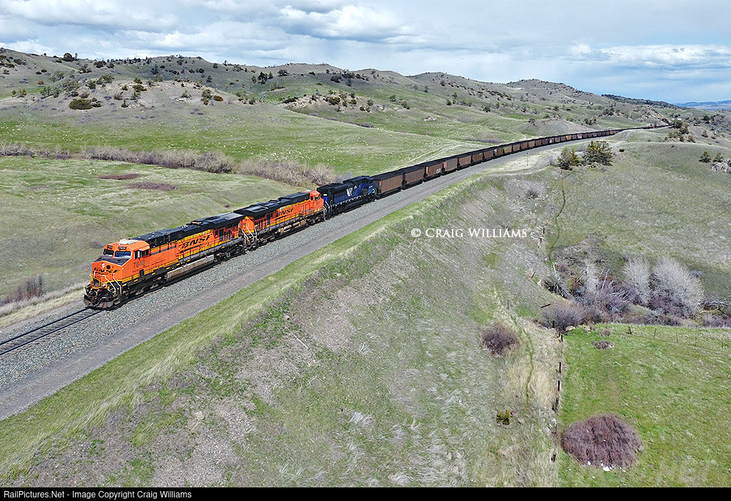 Unsure if its all the time, but the week we were out here, the Bozeman Pass is alittle different in operations than Mullan Pass. Mullan seems mainly 4 helpers mid-train and shove. Over Bozeman sometimes the helpers were cut-in, on the rear, on the headend, or none at all. This practice seems to allow for more flexibility to this 1.8% grade than Mullan probably due to train and size. Here we have a loaded coal train with a MRL unit picked up at Livingston on the headend and helpers on the rear end, doing what they do to fight gravity.