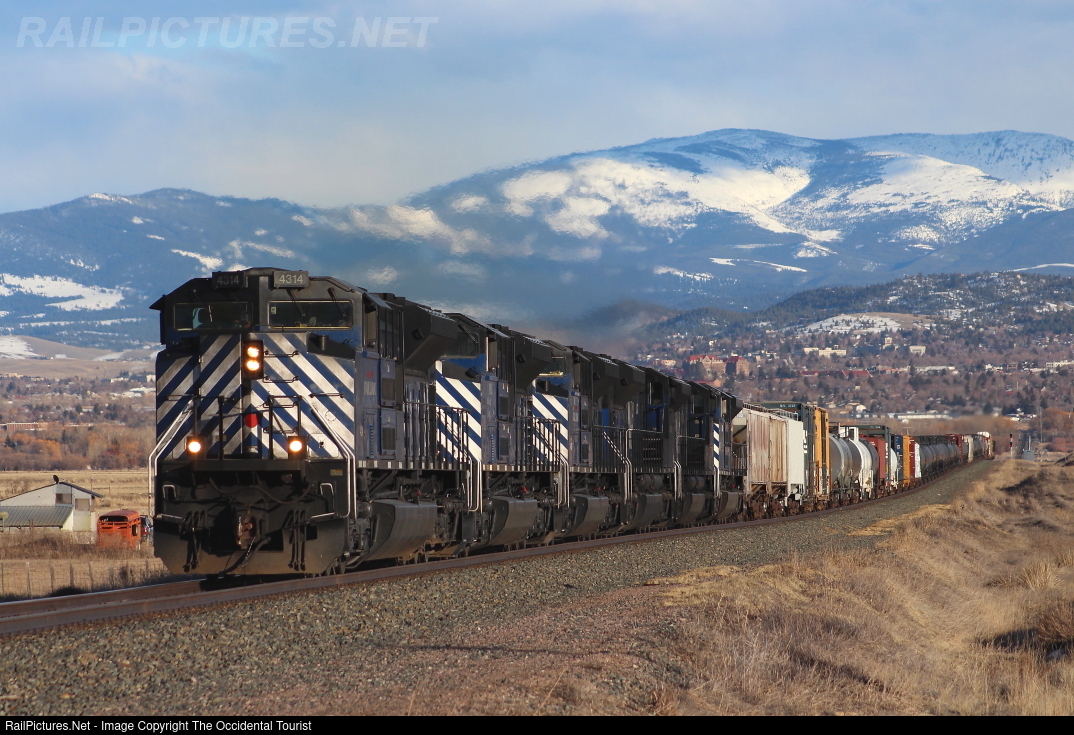 A whopping total of ten MRL Aces are represented here....six up front, four on the rear. Two unexpected events brought this together. The LM lost their lead motor after leaving Livingston and climbing over Muir, requiring them to tie up in Townsend and run that motor light to Helena. Later, a helper set ran back down to Townsend to pick up the train, which had the trailing motor attached still. They brought the train back to Helena where the ailing motor had been repaired and added back to the consist, which kept the Helena-based helpers for the trip to Missoula, not only to insure it got there, but to place a helper set in Missoula to push trains over the 10th Sub while a derailment cleanup blocked the preferred (and helper-free) 4th Sub. Evidently, this hasn't happened for 10 years or more. All of this resulted in the prized "climbing out of Helena" shot. With 100% MRL power.