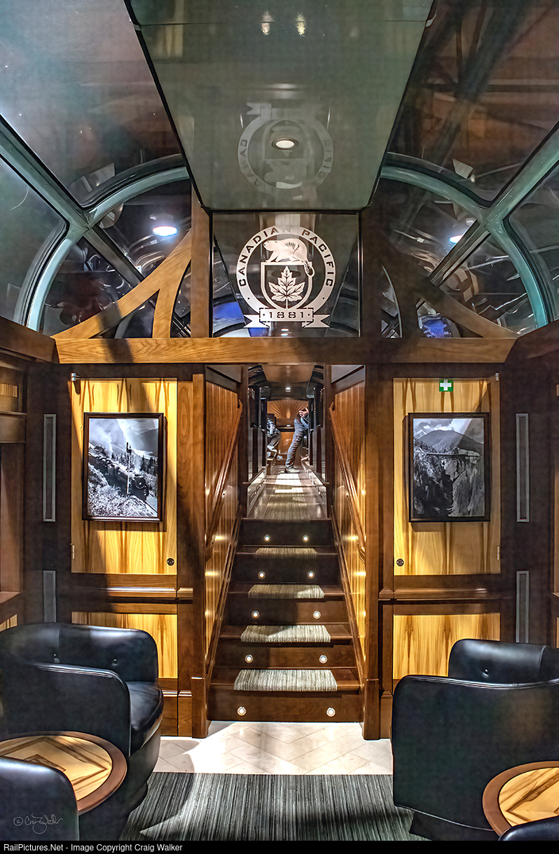 Canadian Pacific acquired it from the Royal Gorge Route Railroad (in Colorado) in 2018, and the car underwent an extensive rebuilding in CP's Ogden Yard in Calgary, which required the car to essentially be rebuilt with nearly all-new material, with work completed in June 2019. Along with rebuilding this car's superstructure, the interior was also completely reimagined, and this car now has a look somewhat reminiscent of its SP days, but with a much more elegant appearance. I remember riding in a few of these back in the 60s, and the word "Linoleum" comes to mind. Today, this car's interior is nothing short of elegant, yet thanks to the work of CP's crew (and, in particular, Senior Manager of Heritage Operations Kevin Hrysak and Manager of Heritage Operations and Mechanical Justin Tracy), somehow much of SP's original design was retained, but updated with better materials (just admire all the woodwork!) and more comfortable accommodations. (And, as of April 14, 2023, the new CPKC Railway not only owns this former SP dome-lounge, but also another in service on the Panama Canal Railway, part of the new CPKC system.)