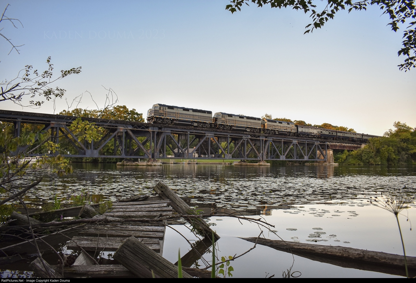 CSX's OCS crosses the Thornapple River on their way to Chicago.