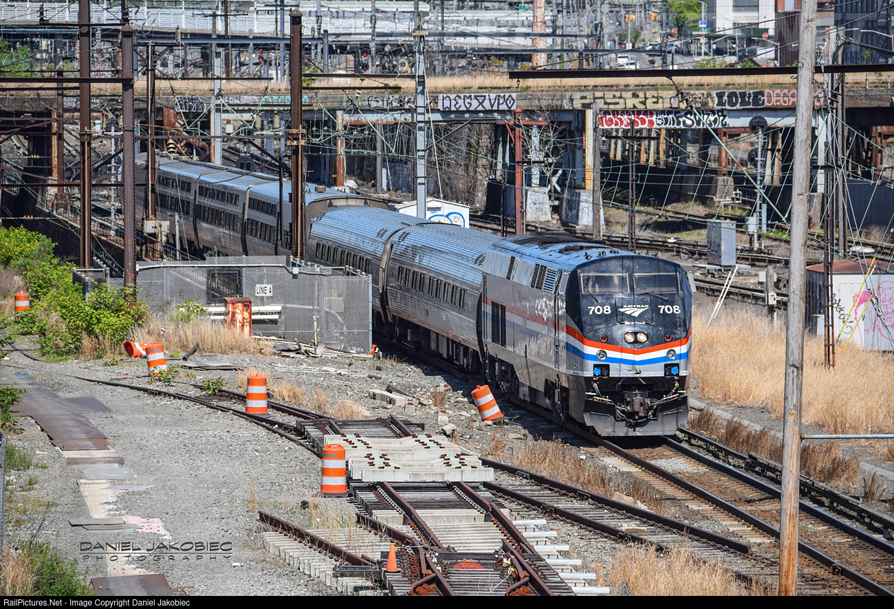 | An Amtrak train crawls slowly to tunnel entrance while leaving Sunnyside Yard for New York Penn Station in Manhattan where it will join service on Empire Service Line. |