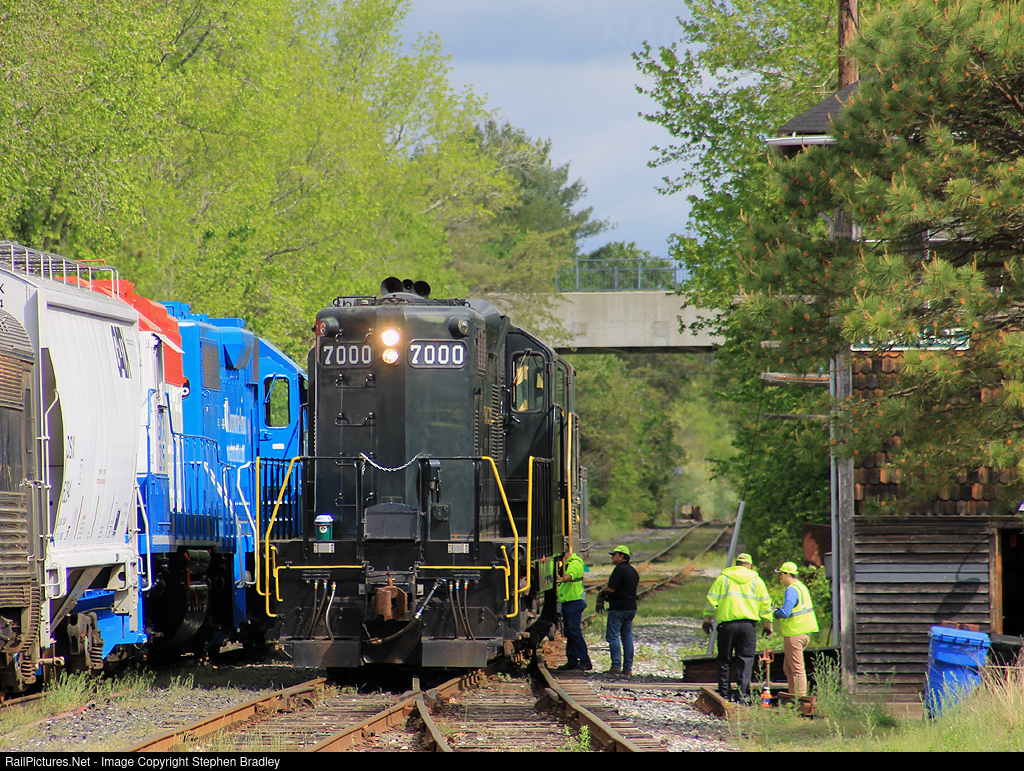 | A nice surprise this morning is seeing a Cape May Seashore Lines crew giving their engines a look over. What's really cool is that they are using a PRR GP9 and a CNJ GP7 to do their day's work. Said work involves pulling stored cars off of the Cape May Branch and onto the Ocean City Branch to retrieve the cars they need to. |