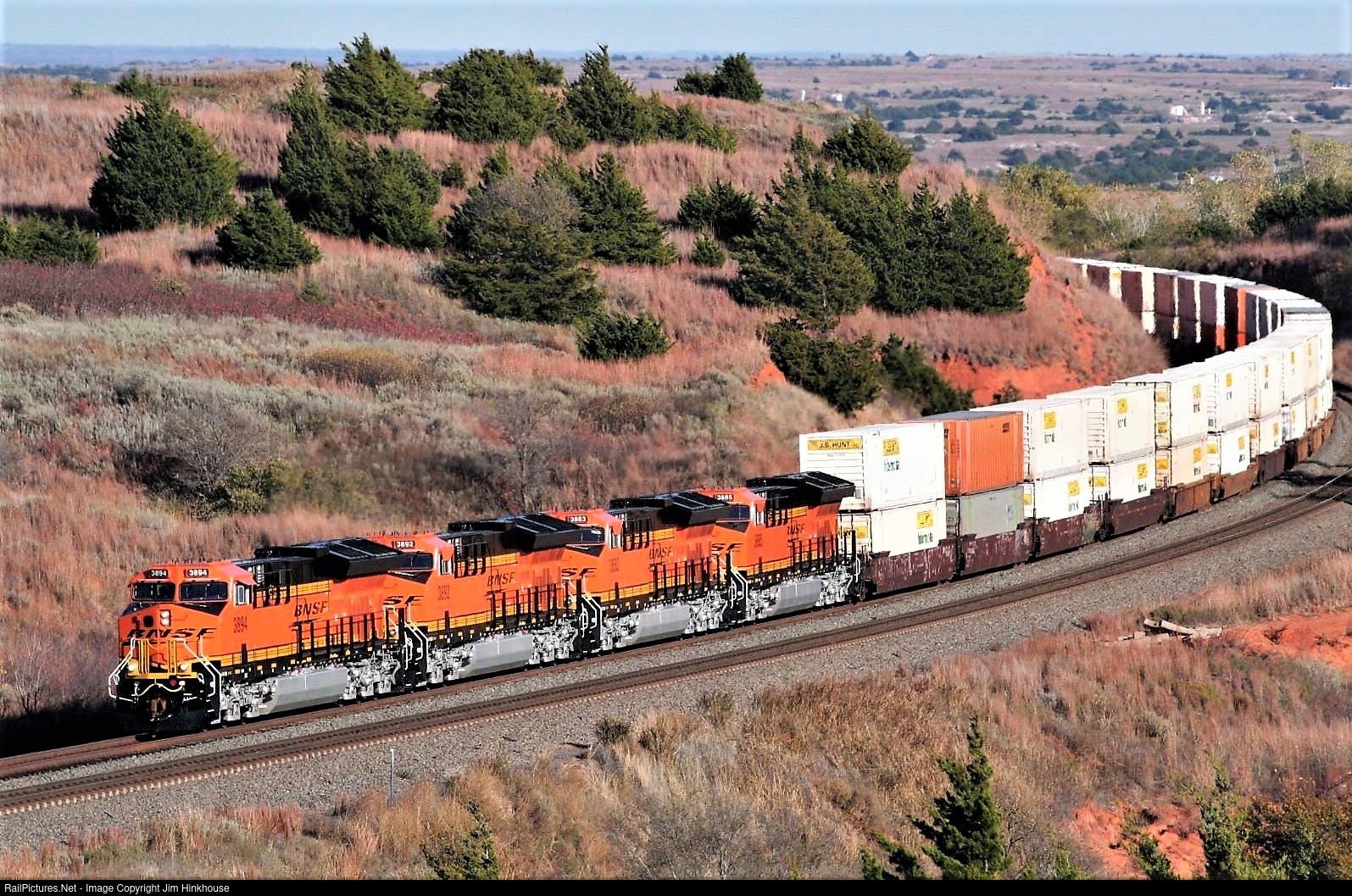 RailPictures.Net Photo: BNSF 3894 BNSF Railway GE ET44C4 at Quinlan, Curtis Hill, Oklahoma by Jim Hinkhouse