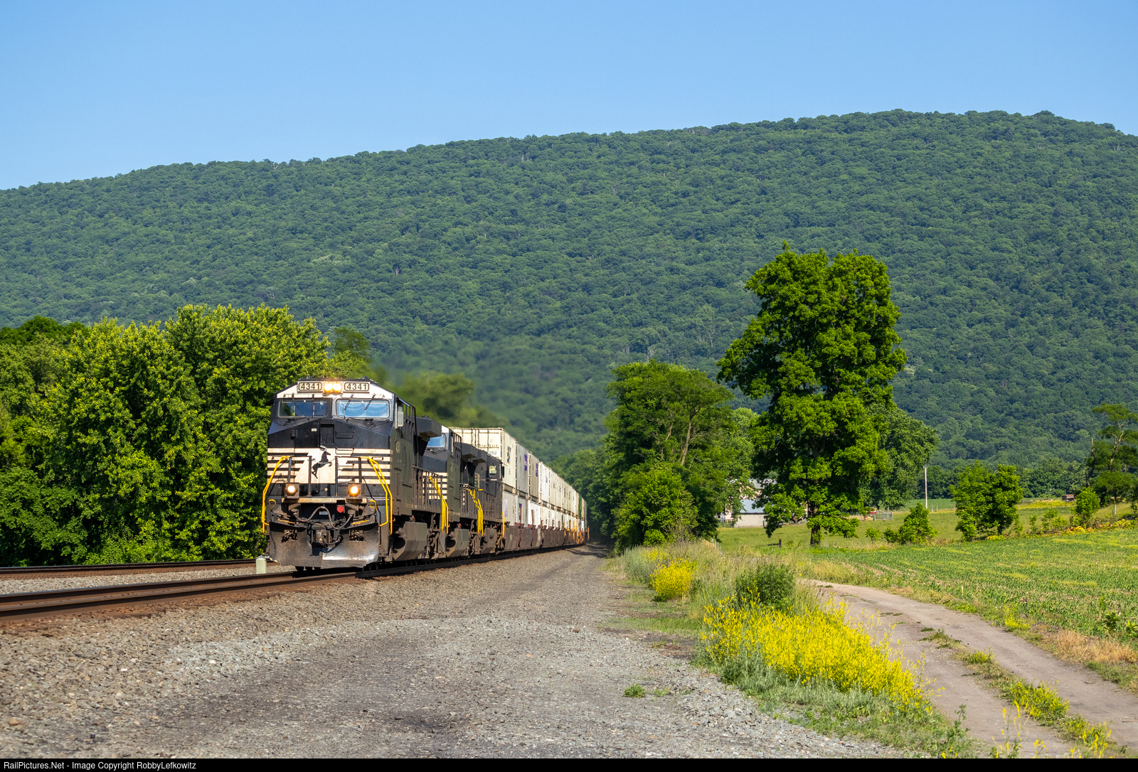 NS 4341 leads westbound intermodal NS 29G through Horningford on the Pittsburgh line Middle division, as the train continues its journey west toward Pittsburgh. |