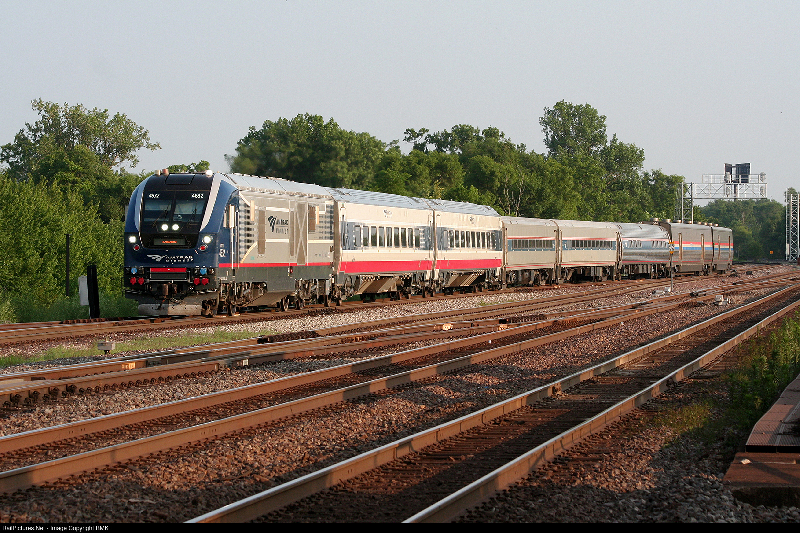 The Amtrak Missouri River Runner arrives on time at Joliet in at the golden hour on a nice evening with an interesting assortment of equipment in all sorts of flavors of Amtrak liveries. They just can not get anything to match these days...