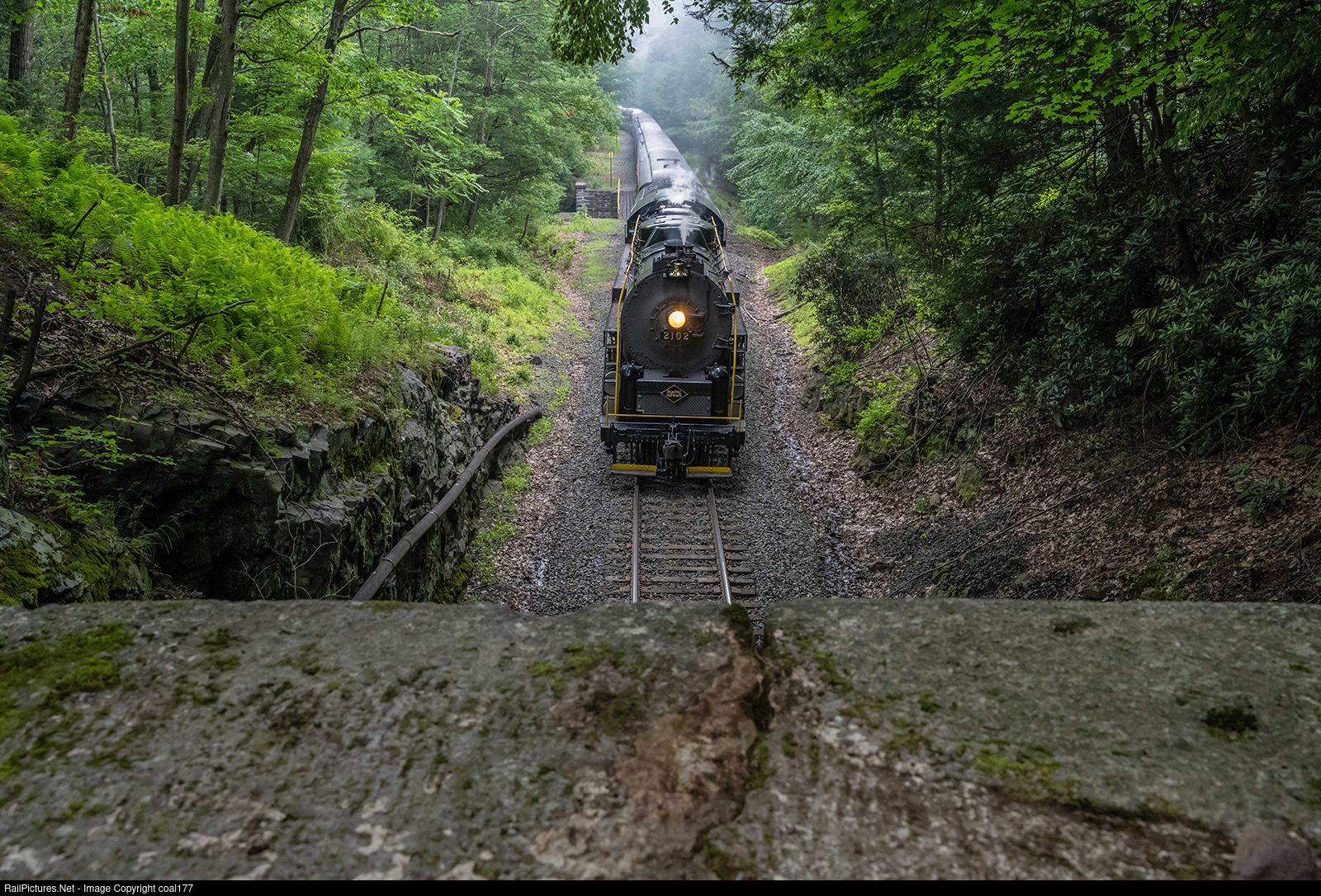 2102 roaring up the grade about to enter Tamaqua Tunnel.