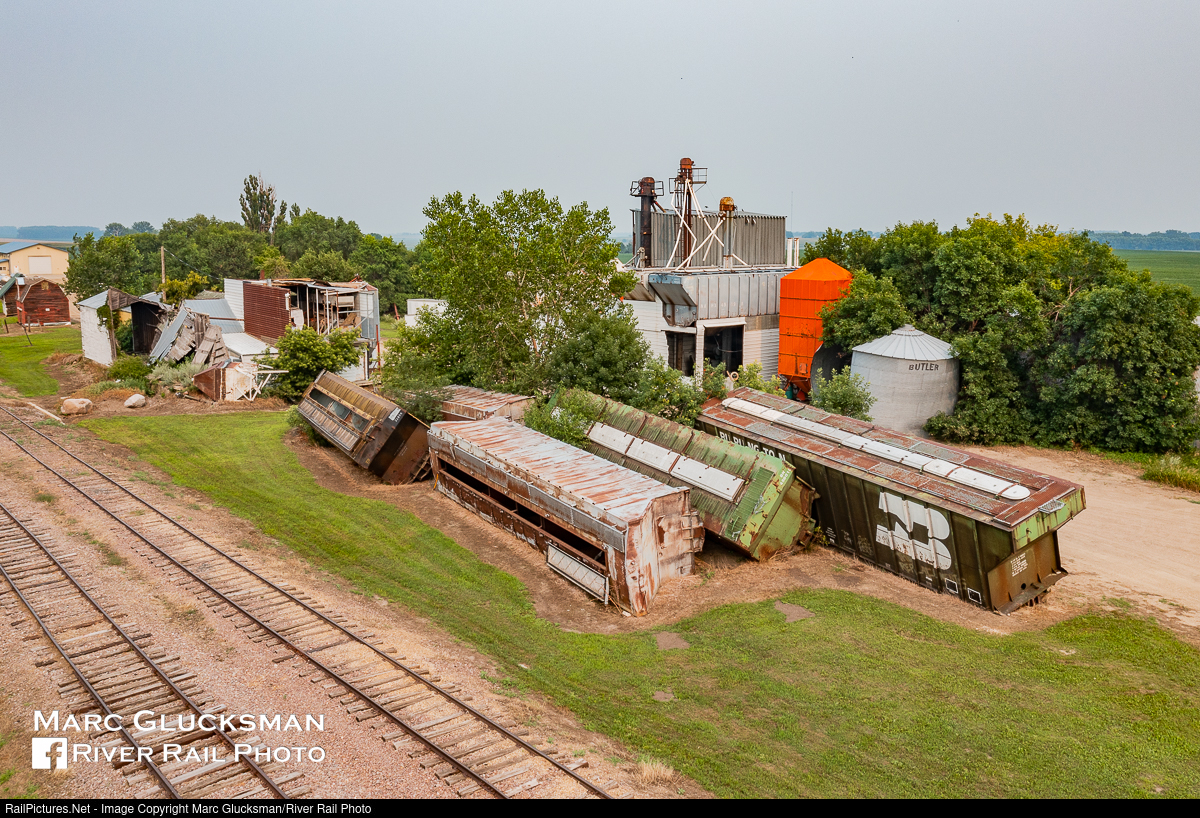 Hazy Day On The Sunflour Railroad. Built for what would become the Soo Line Railroad, the modern day Sunflour Railroad (reporting marks SNR) functions as a car storage line with no active customers and interchanges with CPKC at Rosholt, South Dakota. The small yard and shops in Victor, South Dakota hosts an impressive display of toppled freight cars on well manicured grounds demonstrating the still active status of the property, as seen through the haze of Canadian wildfires on August 1, 2021. Legend has it that the name "Sunflour Railroad" was an an optional name in the developing process for the Monopoly board game.