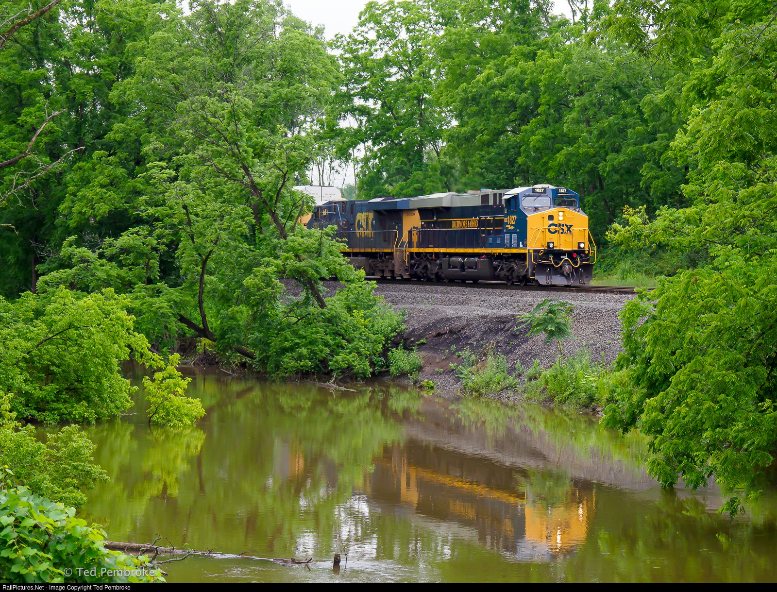 Moments after a heavy band of rain swept thru, M264 Peeks thru the trees along Ganargua Creek. The fresh Heritage unit cast a nice reflection in the water that is also known as Mud Creek.