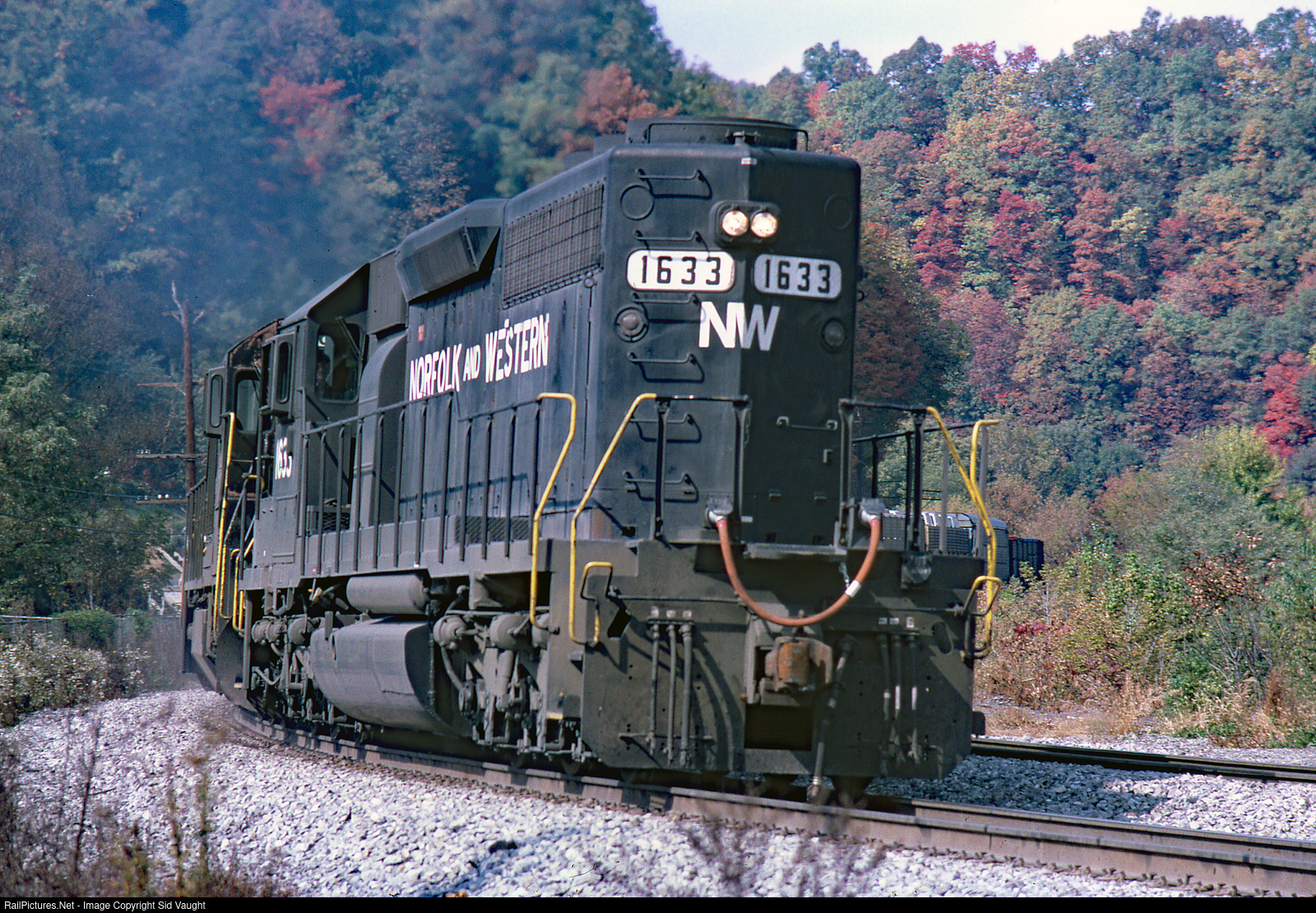| Still in the colors of my favorite railroad this unit is leading an EB mixed freight train about to pass the junction of the Clinch Valley District. Photo by Jim Satterwhite. From my collection. |