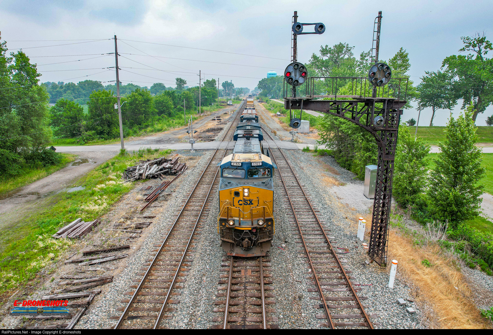 | With a heavy presence of smoke in the air from Canadian wild fires, southbound train M561 passes some of the B&O Color Position Signals in Deshler on it's way to Cincinnati. |