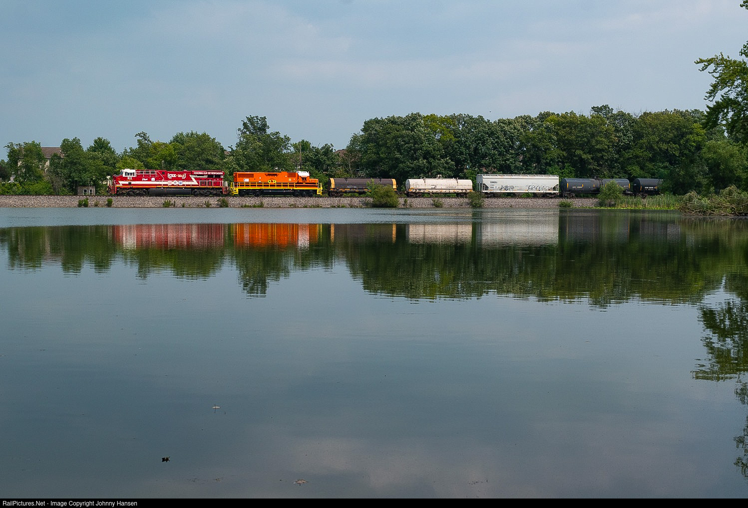 | The daily northbound road freight on the CSX Monon Subdivision, M642 wastes no time heading through Cedar Lake with an out of the ordinary consist. CSX ES44AC 911, the honoring first responders locomotive leading a Marquette Rail GP38-3. |