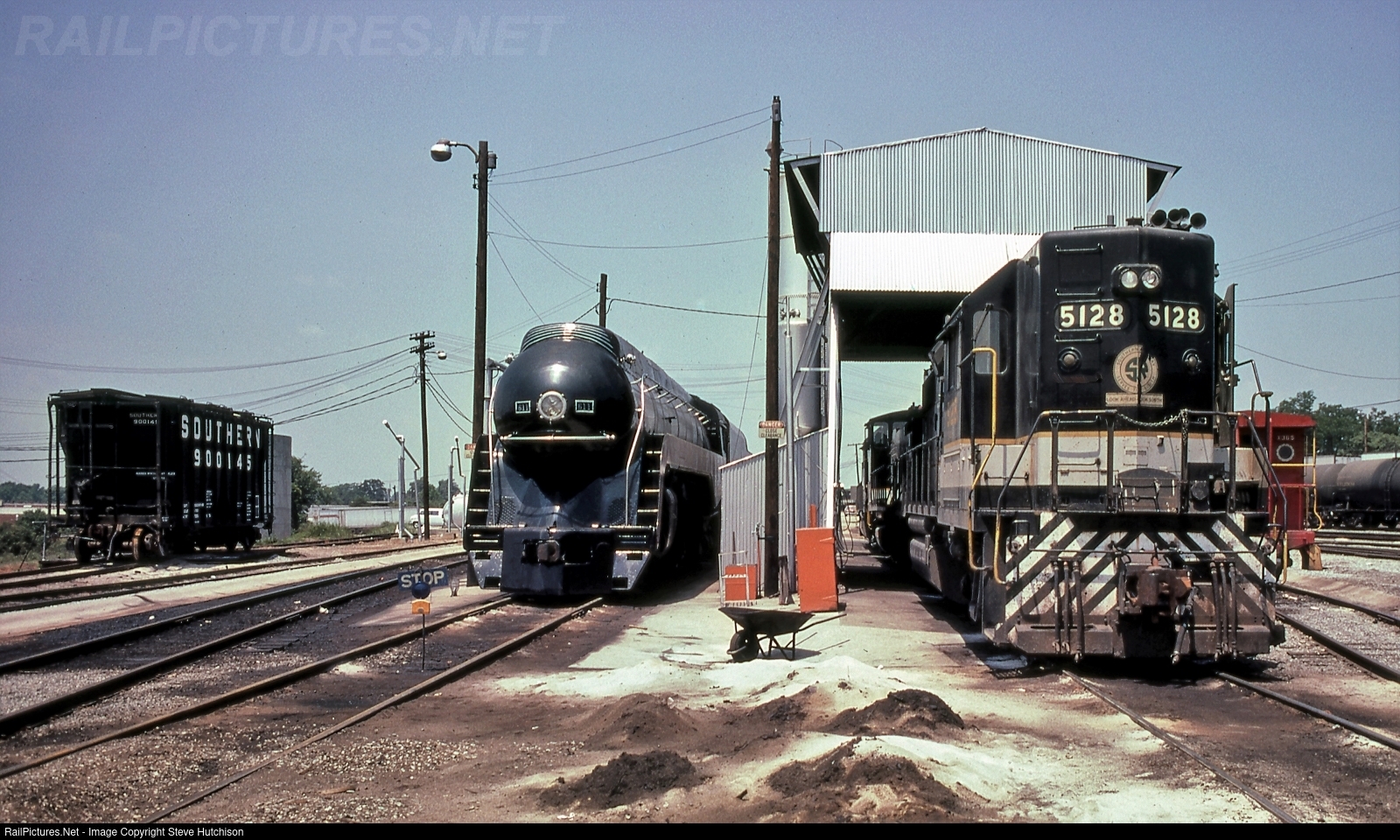 Southern Railway GP38-2, 5128, shares the Pomona Yard servicing facility with N&W 611. 611 was laying over in Greensboro for an upcoming excursion.