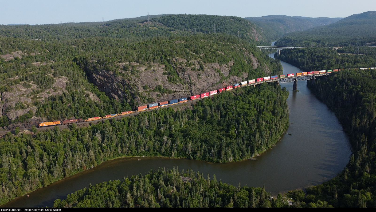 CP ES44AC 8757 (Every Child Matters) + CP AC4400CW 9753 & dp KCS ES44AC 4836 with CPKC 113-02 (Montreal Hochelaga, PQ - Vancouver Coquitlam, BC) head thru Neys along the Little Pic River