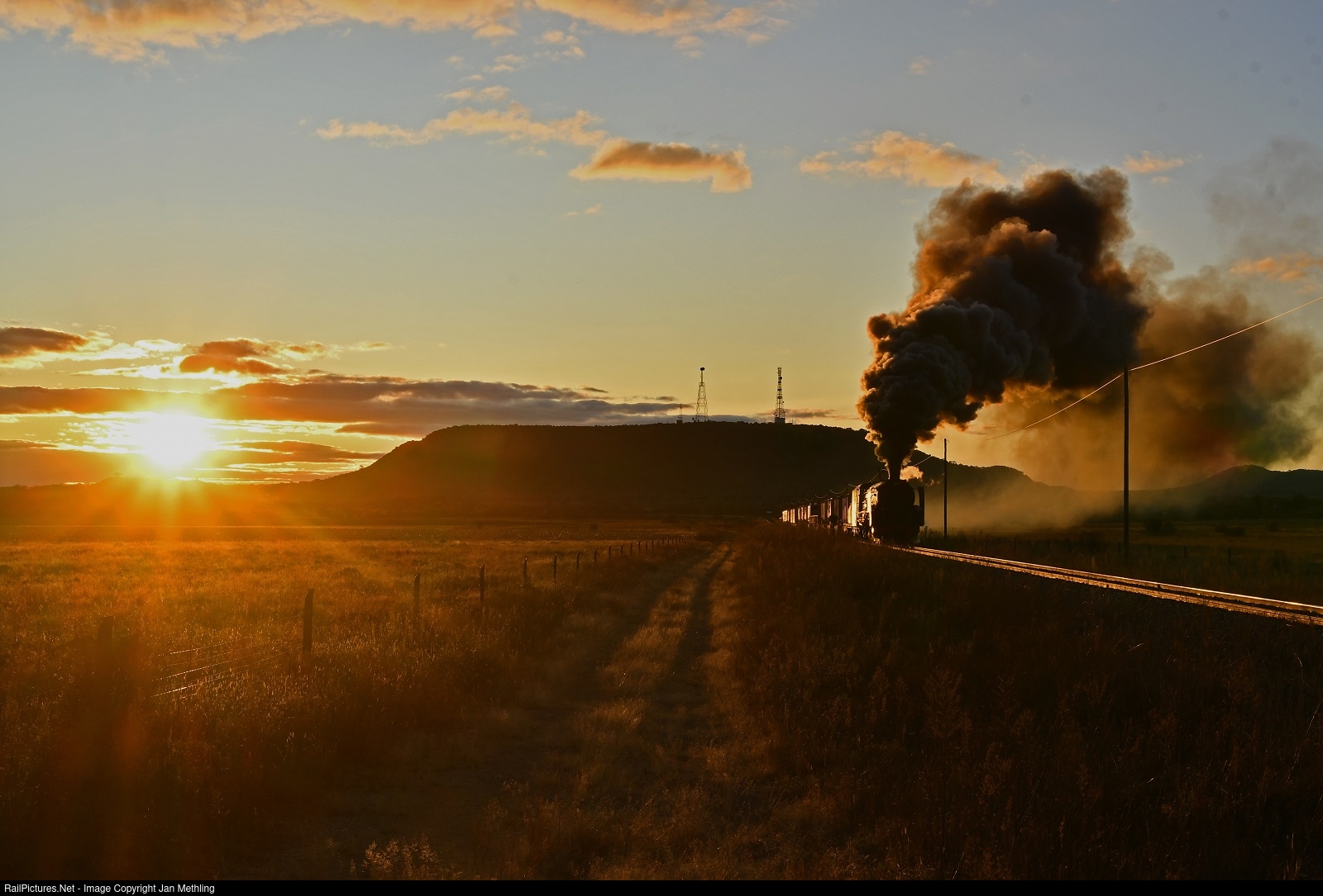The Farrail-Photo-Special-Train on the way to Bloemfontein some minutes before sunset