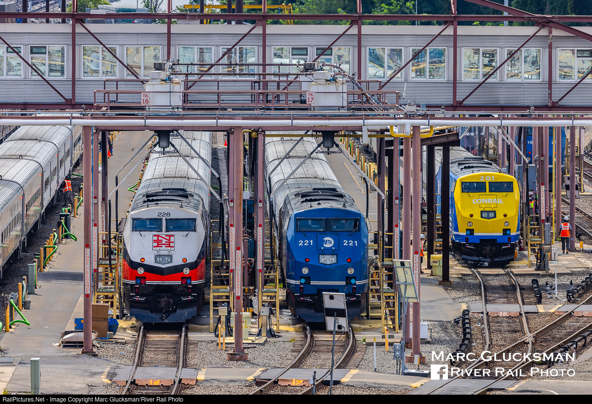 Conrail And The Rainbow Era. The fuel pad at the MTA Metro-North Railroad Croton Harmon Yard showed the most colorful lineup of the available on MNR yesterday, Monday, August 14, 2023. Newly wrapped kid on the block, MNCW 201, had just made its first run for the public in the Conrail/MTA (MNR 40th Anniversary) scheme, with MNCW 221 in the middle in standard paint, and MNCW 228 showing the New Haven Railroad tribute scheme. The 31 P32AC-DMs in Metro-North service were built between 1995-2001, but seemingly have not attracted as much in attention in their careers as they have in recent months with the addition of these 40th Anniversary heritage wraps.