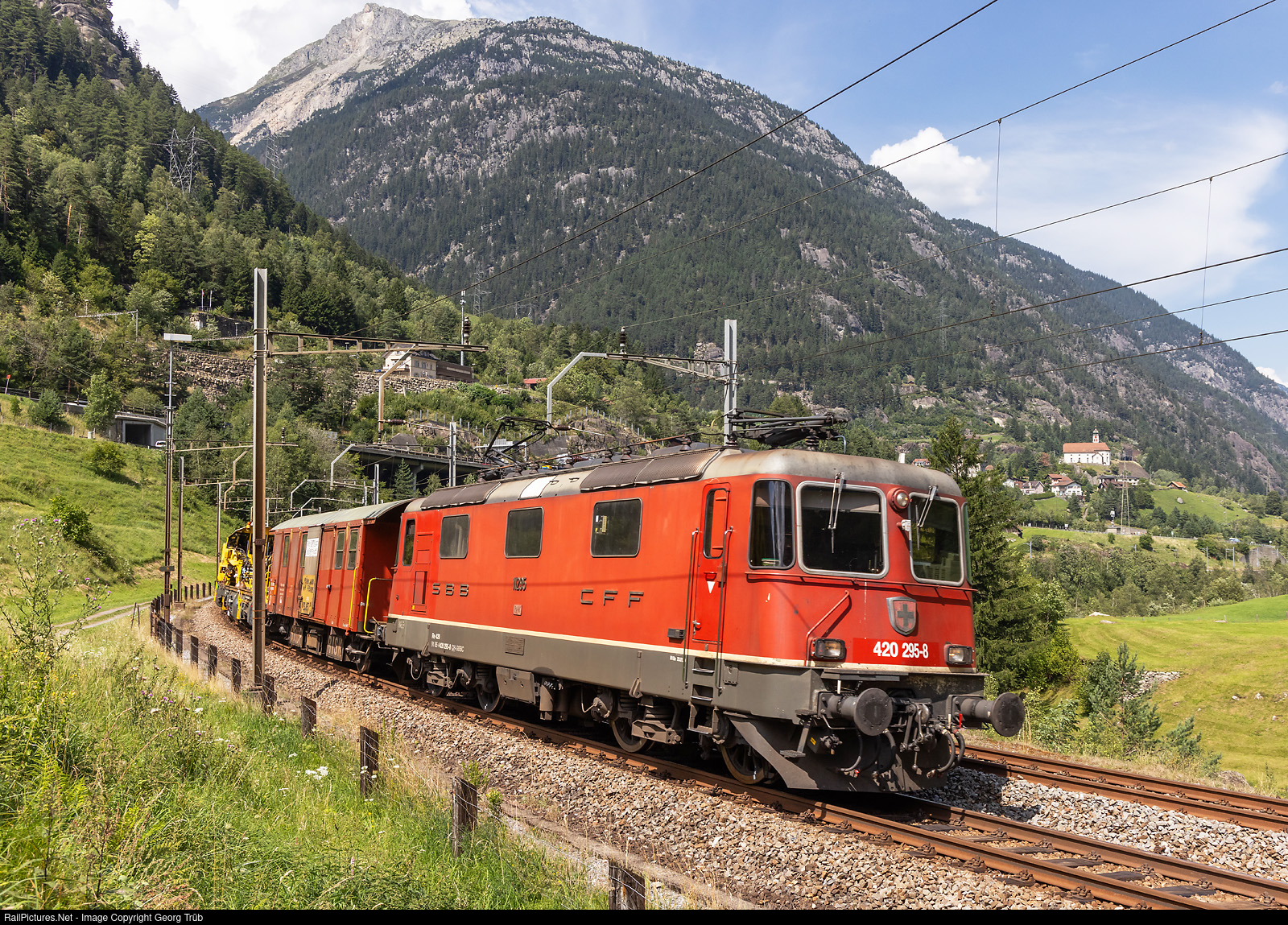 On August 10, a northbound freight train derailed in the 57-kilometer-long Gotthard Base Tunnel, and since then both tubes have been closed. All passenger traffic, as well as freight traffic that can pass through the smaller profile, travels via the Gotthard mountain route, today also called the panorama route. Re 420 # 295 (Re 4/4 II # 11295) of the SBB pulls the freight train 69255 from the Limmattal shunting yard (RBL) to Chiasso freight yard between Gurtnellen and Wassen. The train load were new long rails and the SILAD rail loading unit.