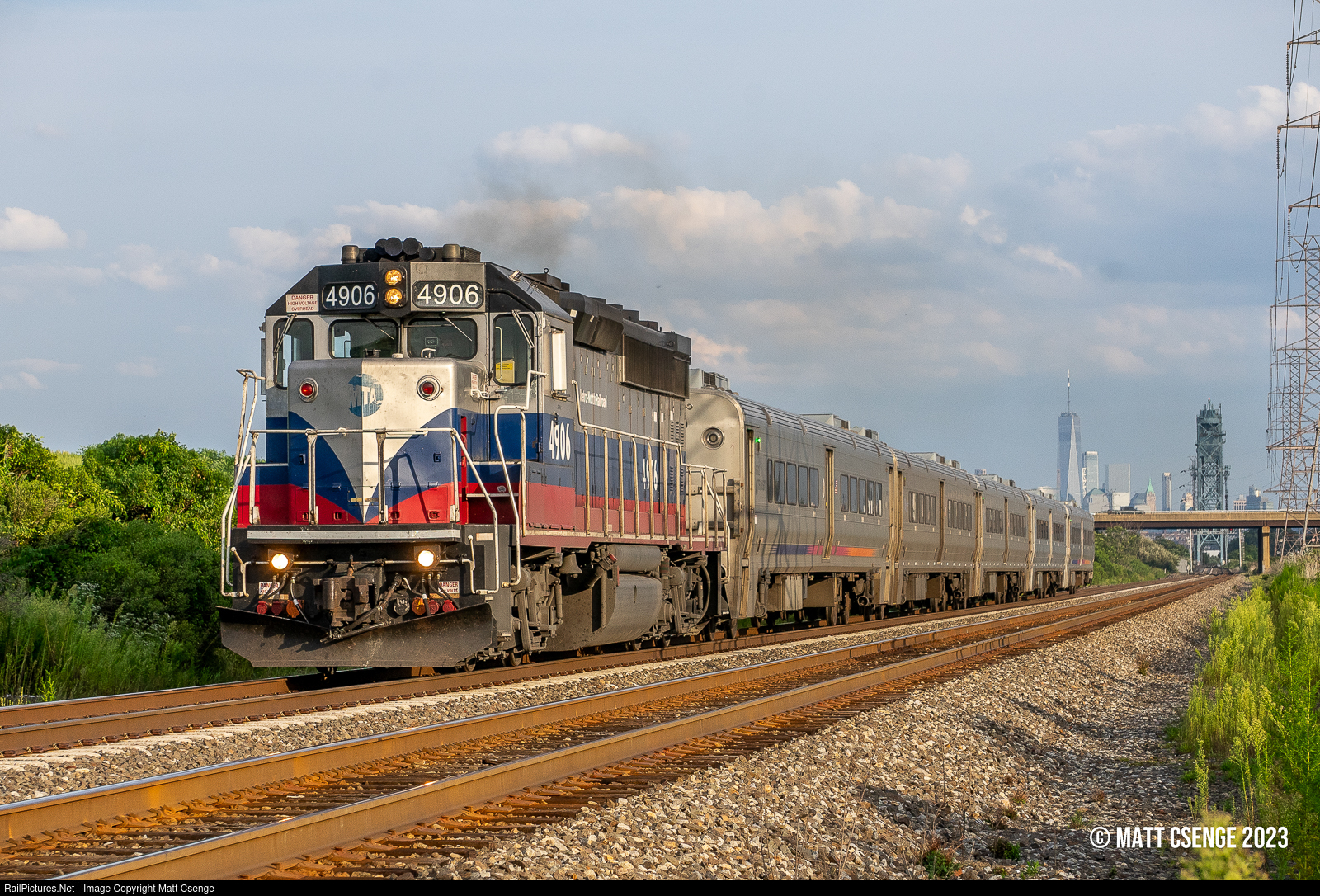 Metro-North Railroad GP40PH-2M no. 4906 (EMD, 1968) is seen leading Port Jervis Line train 57 through the Jersey Meadows. The unit is unique on the Metro-North roster, being the only one of its model that the railroad ordered. |
