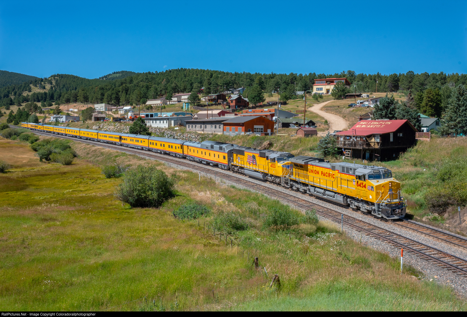 See beautiful diesel locomotives in UP's traditional armour yellow livery and special commemorative paint schemes pulling long trains of yellows cars reminiscent of the days when UP domeliners seemed to go Everywhere West.