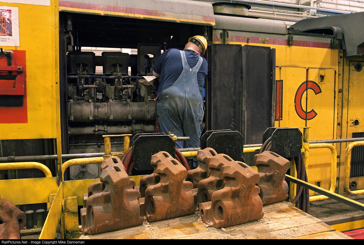 A Union Pacific machinist works on the prime mover of UP GE C40-8W No. 9481 inside the Diesel Shop at the railroad’s Bailey Yard in North Platte, Nebraska, on May 4, 2011.