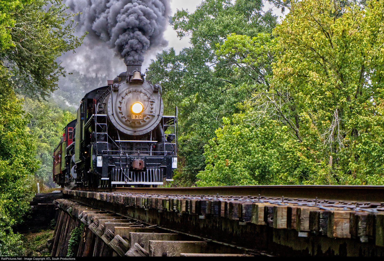 | "A taste of summer with a hint of fall" For the first time in 4 years, the TVRM Summerville Steam Special turns off the NS interchange at 23rd street and enters onto Chattooga and Chickamauga Railway trackage for the trip to Summerville, GA. Powering the special are the two steam workhorses of TVRM, SOU 630 and SOU 4501. |